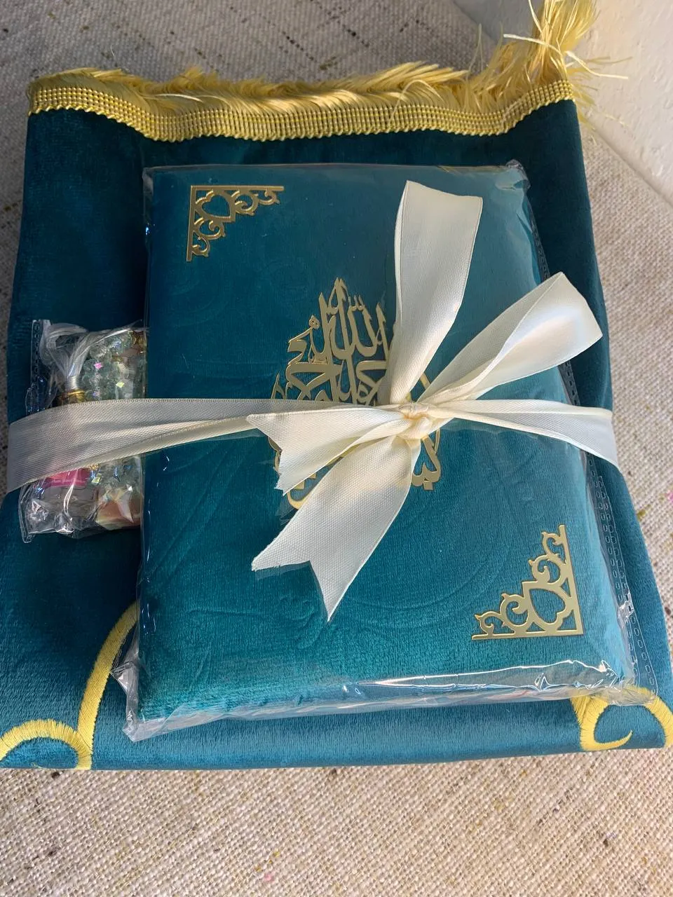 تأتي مع المصحف سجادة صلاة متناسقة بألوانه 🕌، لتجعل من كل صلاة تجربة مريحة